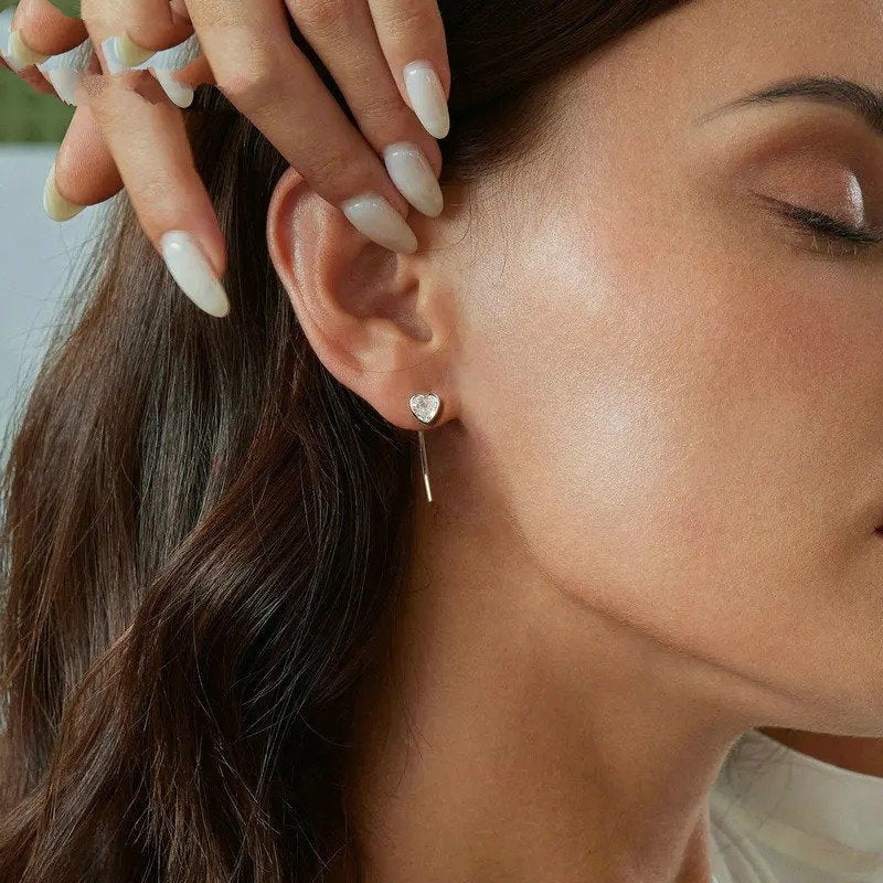 ❤ Description The heart stud earrings with long pins design delicate and unique. Classic shape of heart make them sweet and charming.